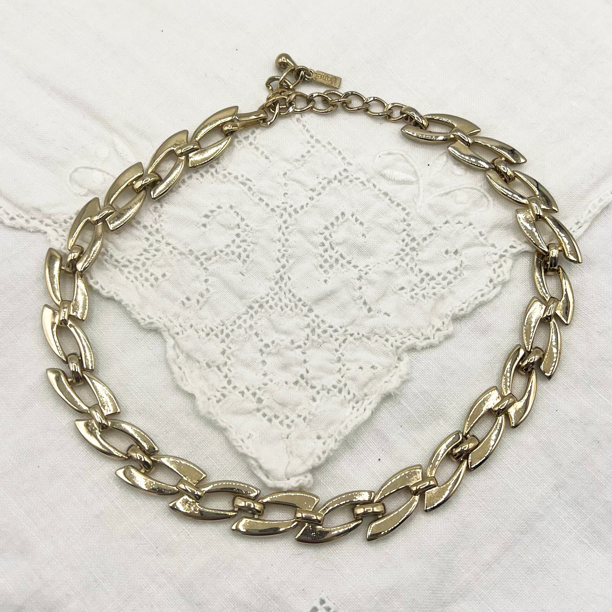 1980s Monet Gold Tone Link Adjustable Choker Necklace - N1231